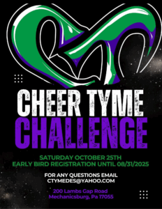 CASH PRIZE !!!! IT’S TIME TO SHOW UP & SHOW OUT! Registration is NOW OPEN for the Cheer Tyme Challenge happening Saturday, October 25th, 2025! College. Rec. High School. All-Star.No matter where you cheer this stage is YOUR moment to shine! Don’t miss out! Early Registration closes August 31st. Lock in your spot today: https://docs.google.com/…/1FAIpQLScY351Zypu6XI…/viewform Competition …